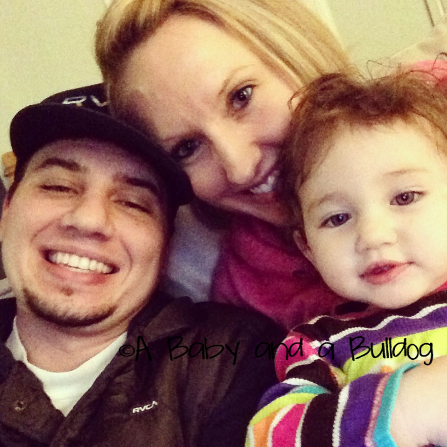 crazy night we had last night celebrating. It was filled with lots of booze (soda for us, milk for the girl), partying (on the couch watching repeats of House Hunters and bath-time fun), and we were up alllll night (Ok, that's a lie). I may not have even been awake to see the ball drop but ehh, that's ok! It sure was not how I used to spend my New Years Eve's but there's nothing I love more now than having family nights with my little family. Here's a picture of us on the couch last night playing with the iPad..